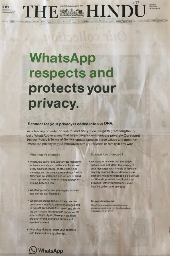 Response of other nations to the new WhatsApp policy: